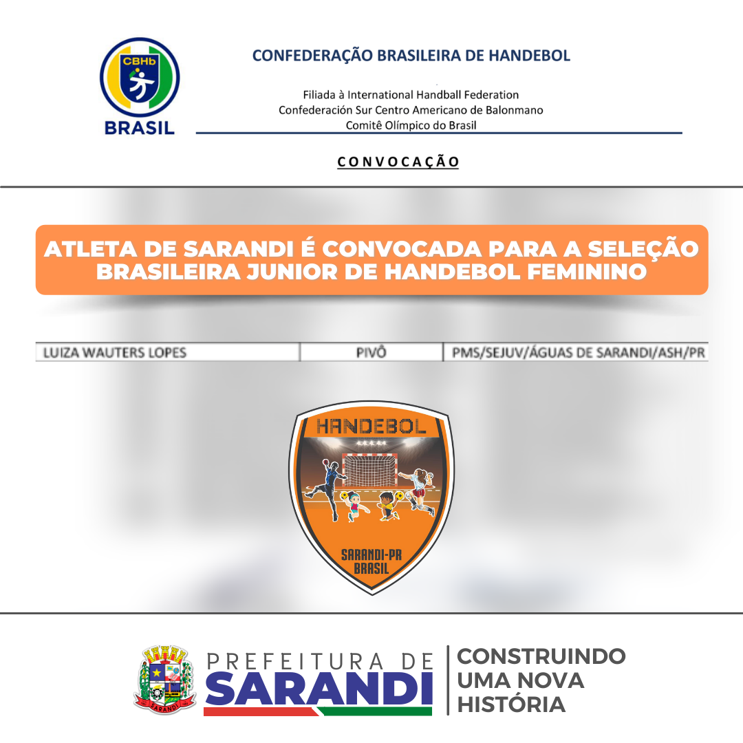 Hoje temos uma notícia excelente para o nosso Município, a atleta Luiza Wauters Lopes (@lwlopes_) foi convocada para a Seleção Brasileira de Handebol Feminino após se destacar na Liga Nacional de Handebol sendo eleita a melhor pivô da Conferência Sul.