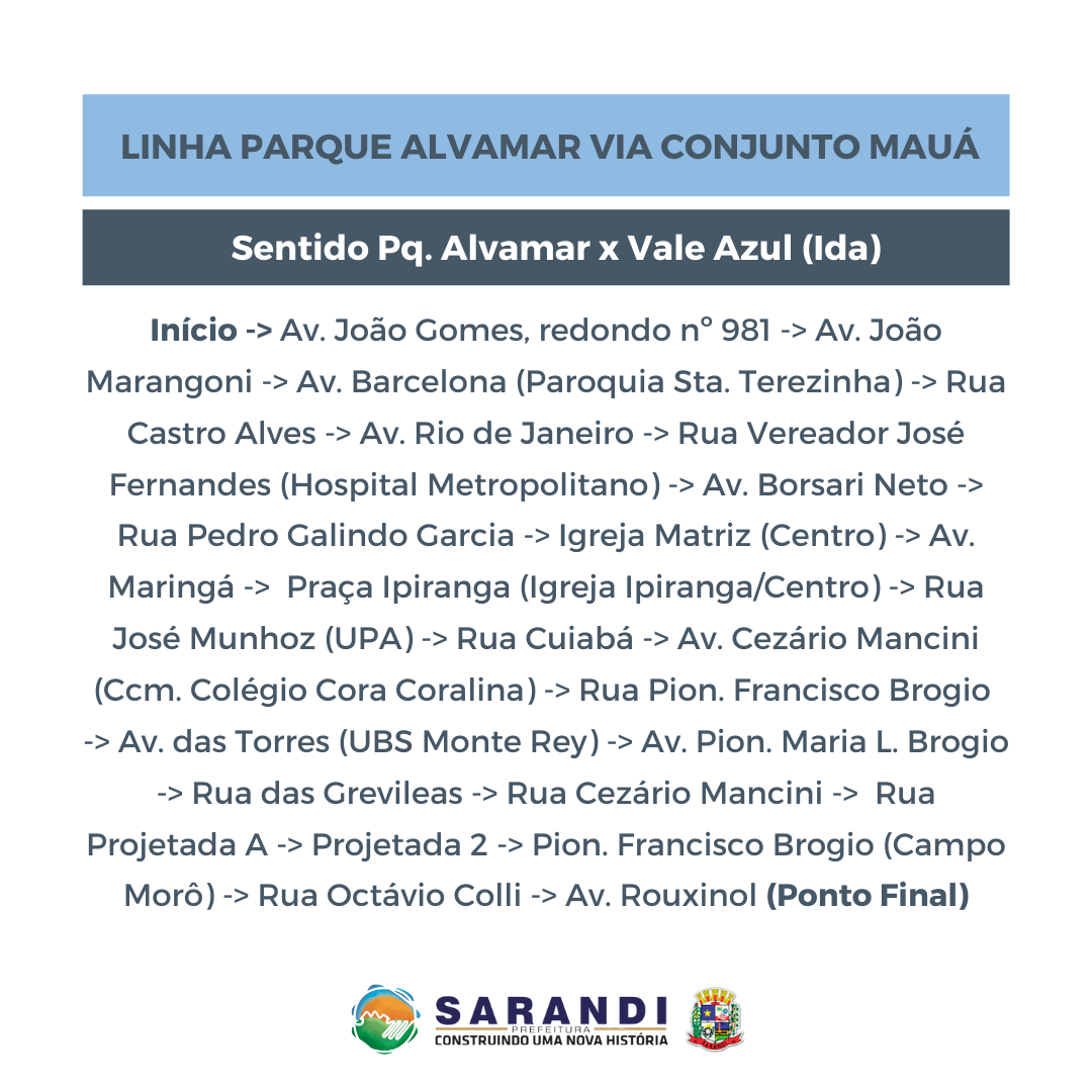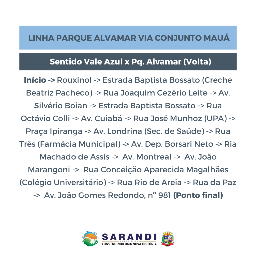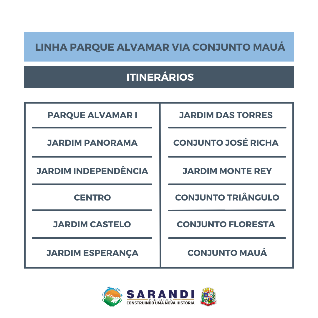 Confira nas imagens o Informativo da Linha Parque Alvamar Via Conjunto Mauá, que terá início na próxima segunda-feira (13).