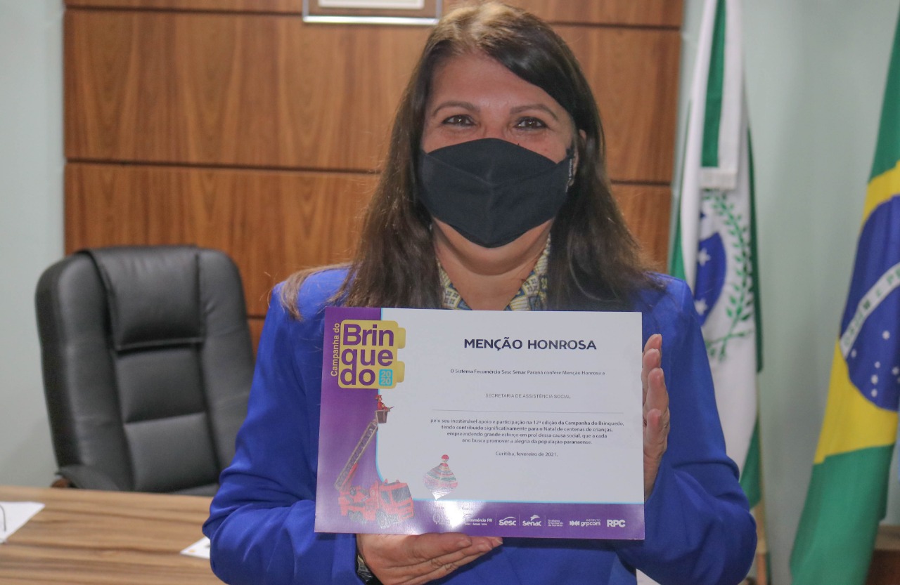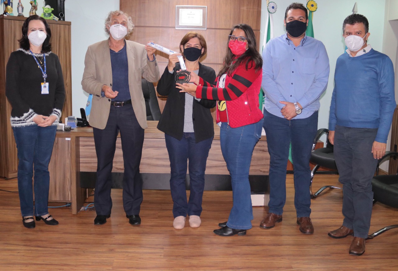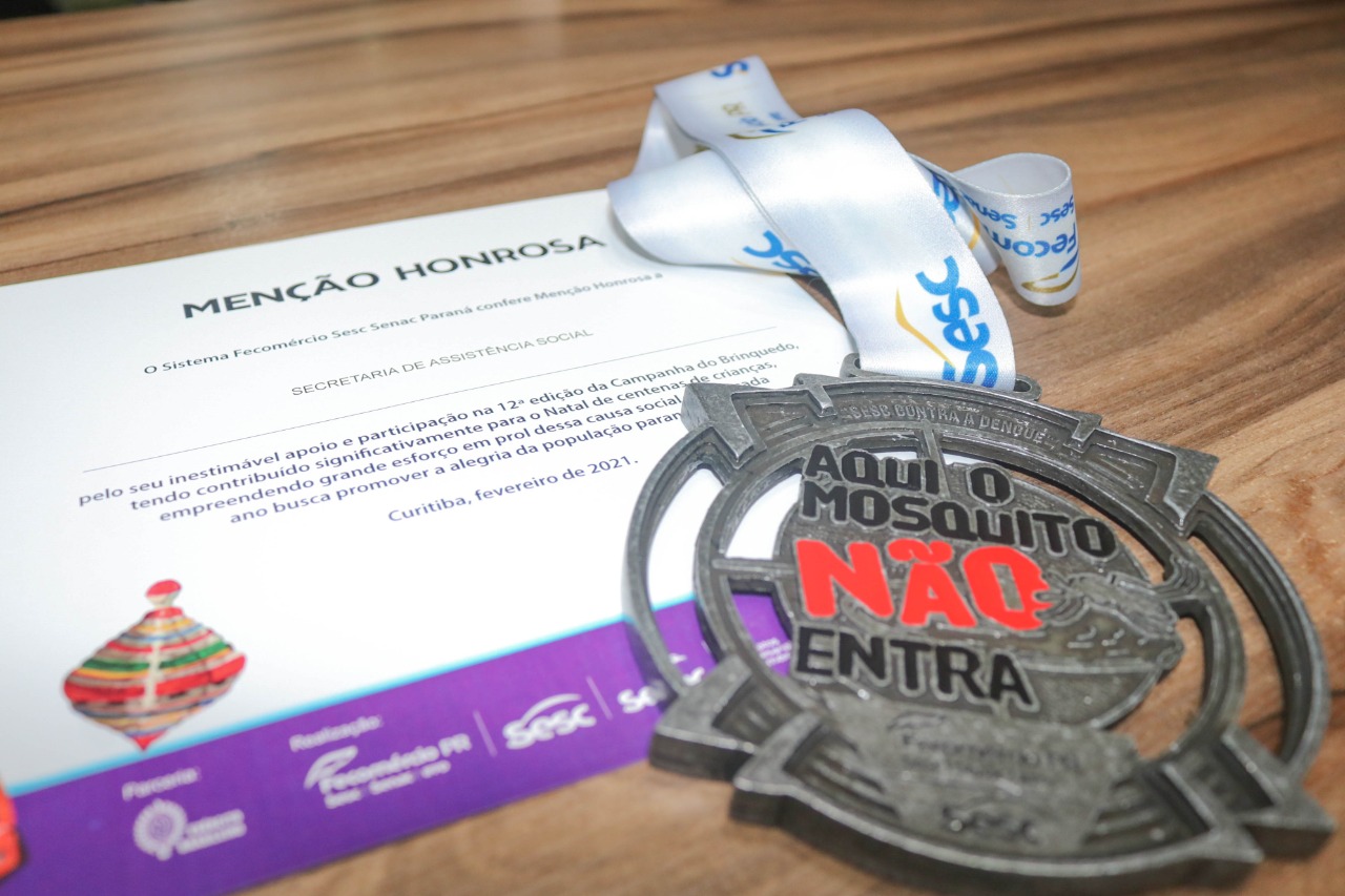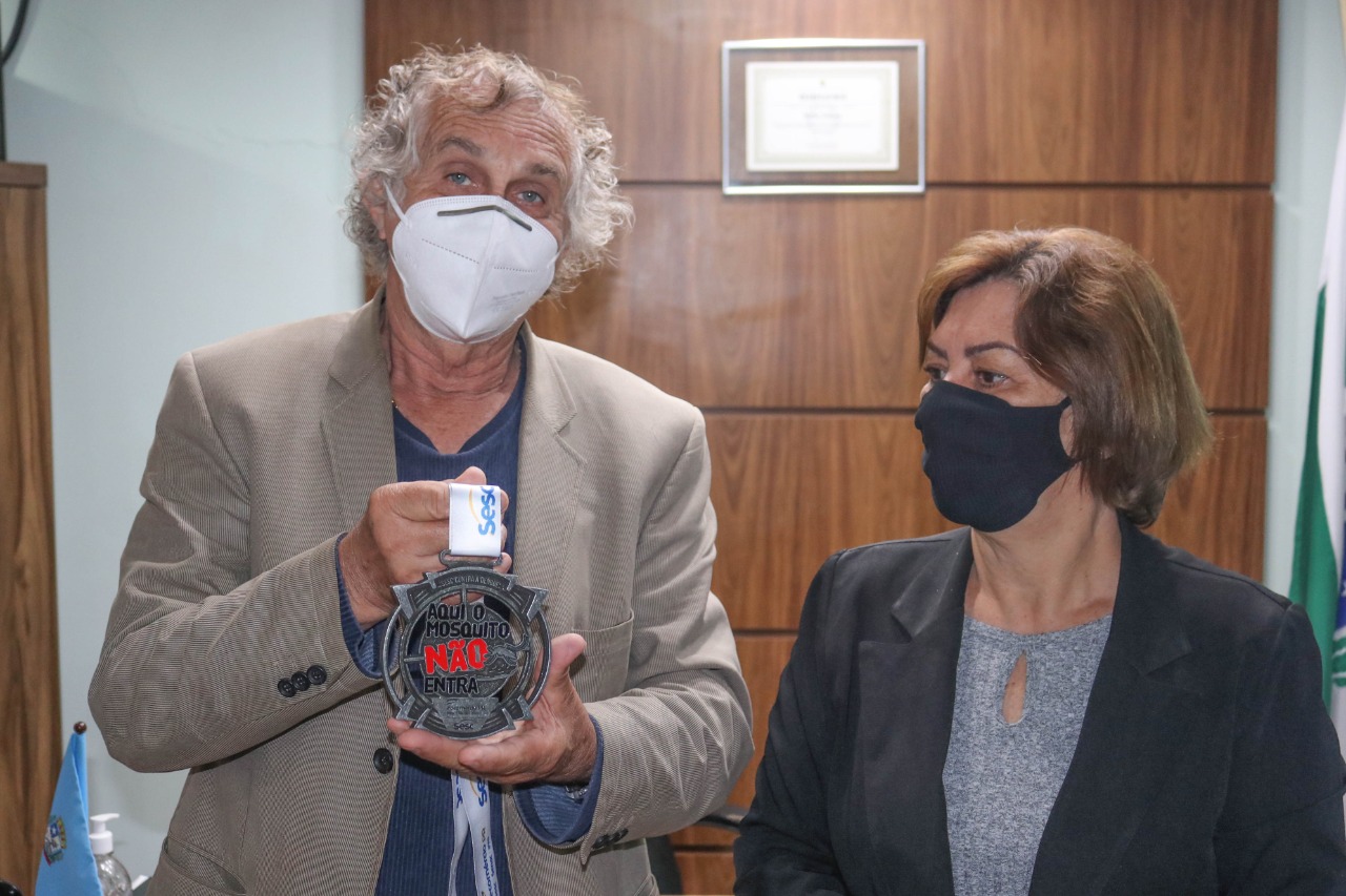 Estiveram na manhã desta terça-feira (08) na prefeitura, Ivone Ferrari, Gerente Executiva e Andrea Alessandra Fernandes, Técnico de Atividades, Trabalho com Grupos do SESC Maringá, elas entregaram ao município uma Menção Honrosa pela participação na Campanha do Agasalho e também uma medalha pela participação na campanha da Dengue, Aqui o Mosquito não Entra, realizada digitalmente ano passado.