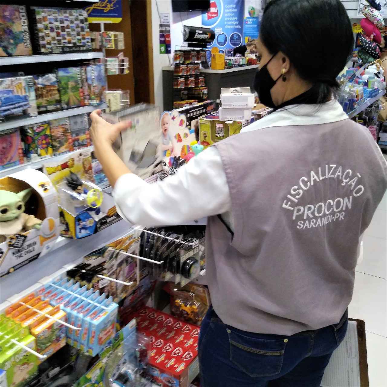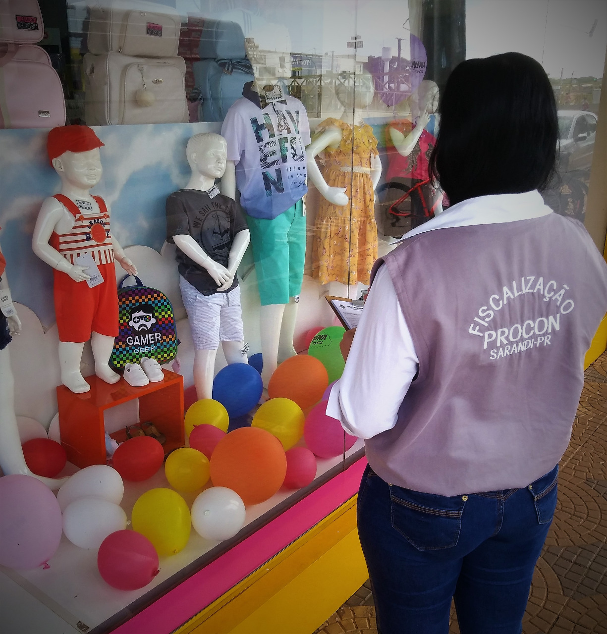Em razão do Dia das Crianças, comemorado na próxima terça-feira (12 de outubro), o PROCON Sarandi realizou ação de fiscalização e orientação no comércio local. Etiquetas com preços em vitrines e exposição dos produtos foram alguns dos itens a serem analisados, com o objetivo de coibir situações irregulares e desrespeitos ao Código de Defesa do Consumidor, mas principalmente com o intuito de orientar aos lojistas a respeito da correta exposição de informações, como preço, condições de pagamento e etc.
