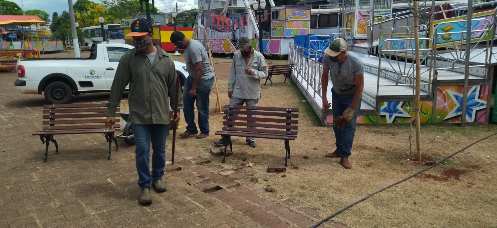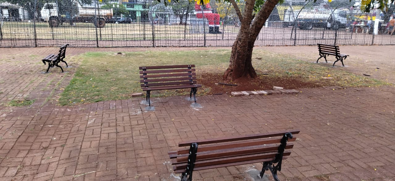 A Secretaria de Saneamento e Meio Ambiente através de seus dedicados servidores, instalou 22 bancos na Praça dos Pioneiros! Os bancos foram distribuídos em toda área da praça para que as pessoas possam descansar e desfrutar de momentos agradáveis enquanto visitam o Parque e as atrações natalinas! Vejam algumas fotos colecionadas durante o período de trabalho! Nossos servidores não medem esforços para deixar nossos Espaços Públicos cada vez adequados a nossa população! Estamos trabalhando diariamente para servir você! Para solicitações, entre em contato pelo telefone: 156