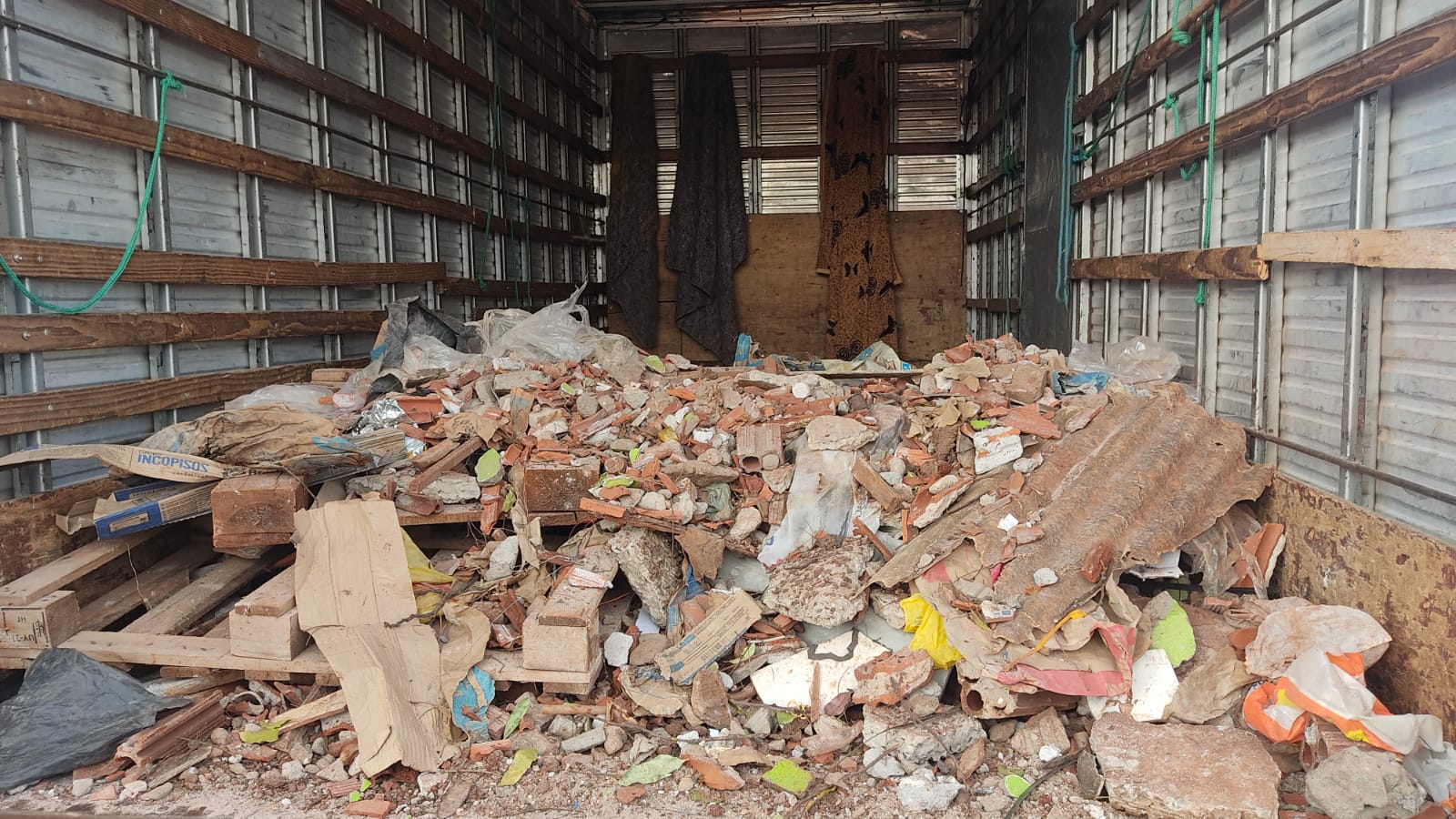 Na tarde de hoje (27) em diligência à Estrada Jaguaruna, a Equipe de Fiscalização da Secretaria Municipal de Saneamento e Meio Ambiente, juntamente com uma Equipe da Guarda Municipal lograram êxito em encontrar um indivíduo realizando o descarte de entulho em local proibido.