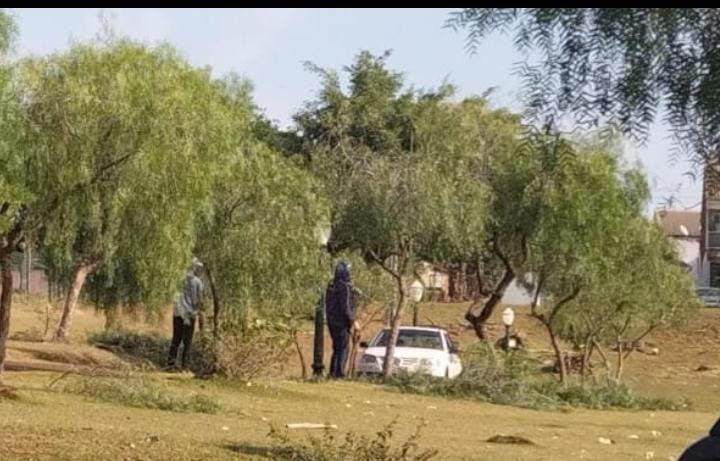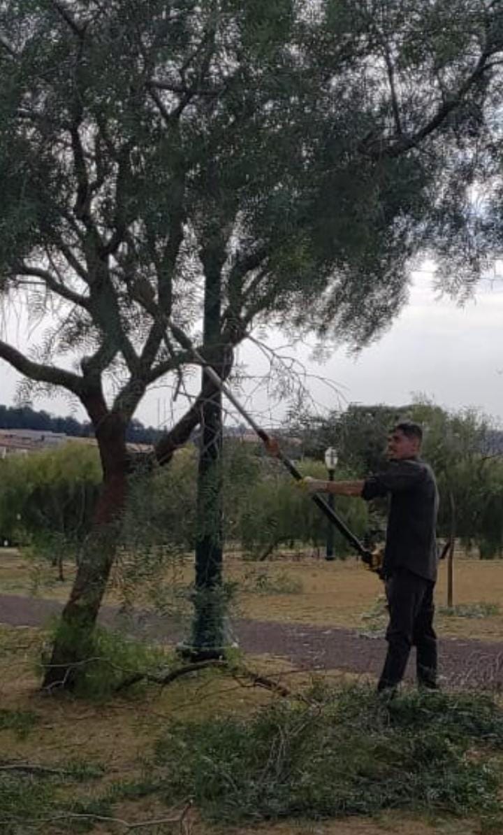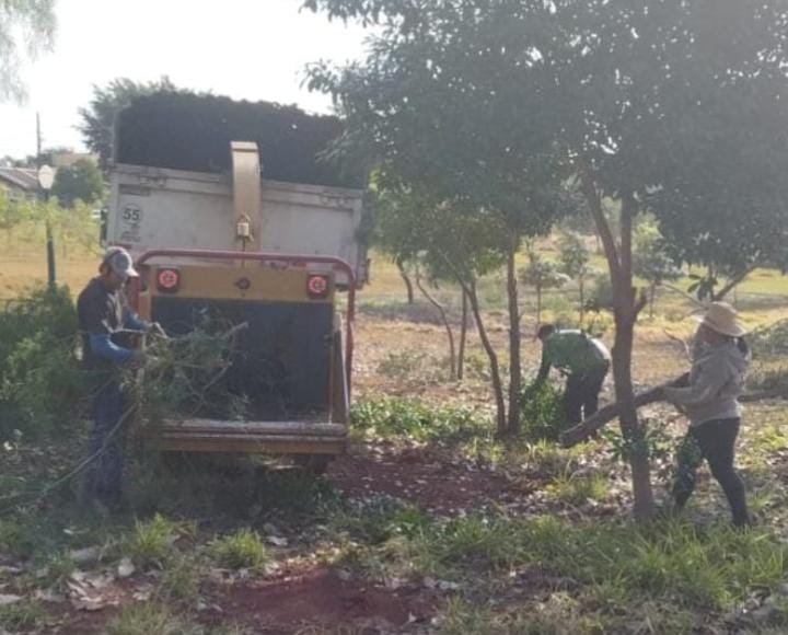 A Secretaria de Saneamento e Meio Ambiente através de seus dedicados servidores, efetuaram a poda de várias árvores e a retirada de folhas secas das Palmeiras, em vários pontos do Parque Ecológico!